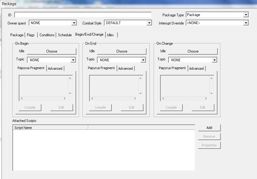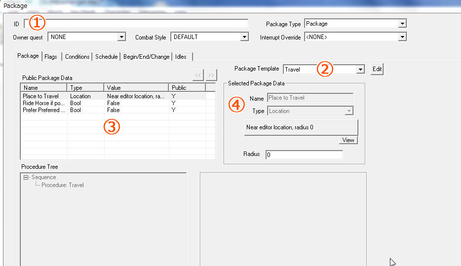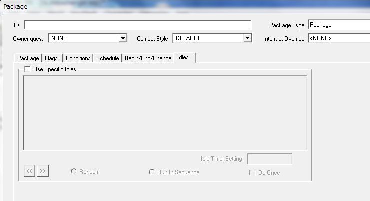 AI Packageのデータ自体はActorデータから独立して存在しています。Object WindowのCharacter > Packages以下に全てのAI Packageがあります。新規作成したPackageはここに加わえられた上で、ActorデータのAI Package Listから参照されることになります。
