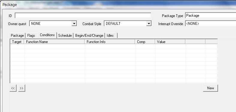 Must Complete:「Travel」のような、行動終了が存在するAI Packageのみに有効と思われます。一度このAI Packageが動き出したら、行動終了するまで他のAI Packageに切り替わることはありません。スケジュールの時間が切り替わっても無視します。確実に行って欲しい行動の場合のみチェックを入れます。クエストがらみではよく使うかも。