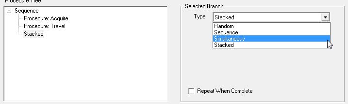 最後に、最上位のSequenceを選択して、右欄「Repeat When Complete」にチェックを入れます。"Procedure: Acquire"が終了したら、また最初からProcedureTreeを繰り返してくれます。