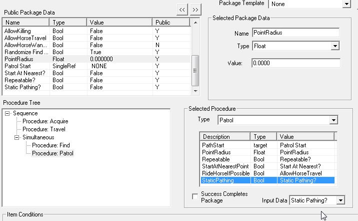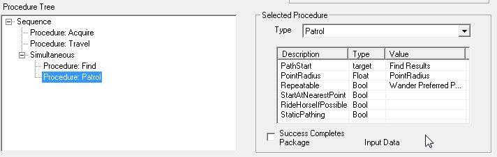 CK wikiでは"Procedure: Wander"を"Procedure: Patrol"に変更するだけですが、ここでは説明のために"Procedure: Acquire"以外全部消しました。