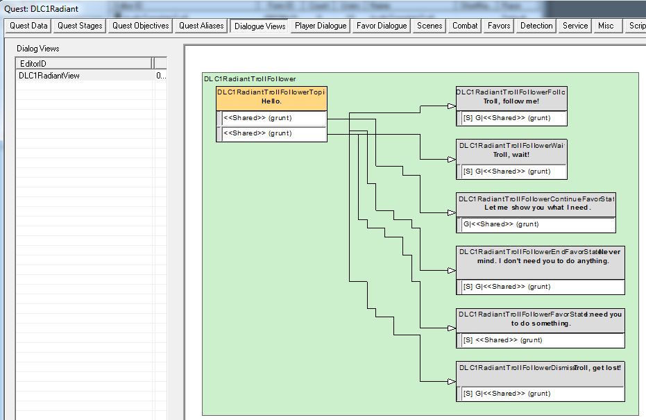 彼に対する指示はすべてBlocking Branchで制御されています。犬のミーコ、ハスキー、デスハウンドも、仲間にするときのダイアログがBlocking Branchになっていたりします。