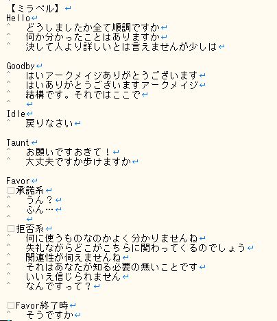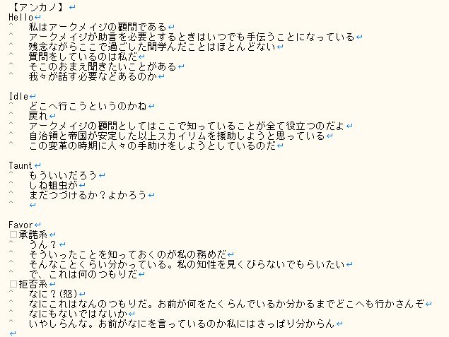 Skyrim Audio Converter」でmp3に変換してから実際の音声を聞き、使えそうなのをメモしました。