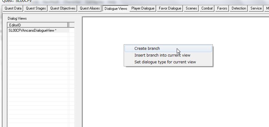 先ほど作ったDialogue Viewを選択。右のView内で右クリック>Create branchを選びます。