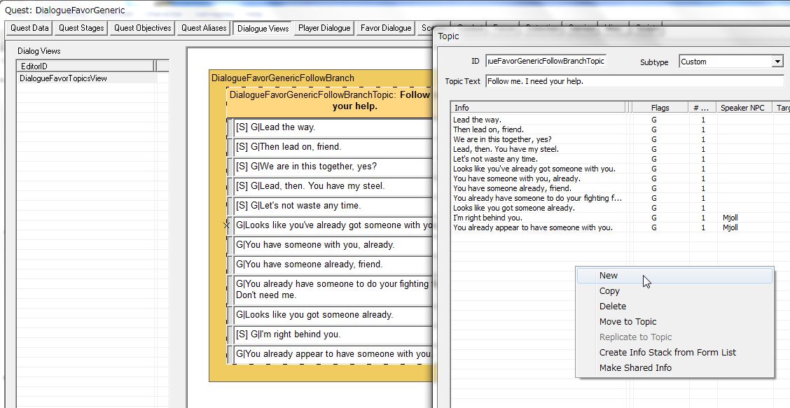 「DialogueFavorGenericFollowBranch」というDialogue Branchがあるので、これのTopicを開きます。