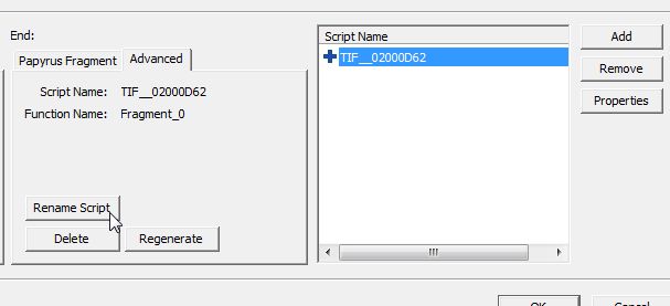 「End」のところで「Advanced」タブをクリック。「Rename Script」ボタンを押します。