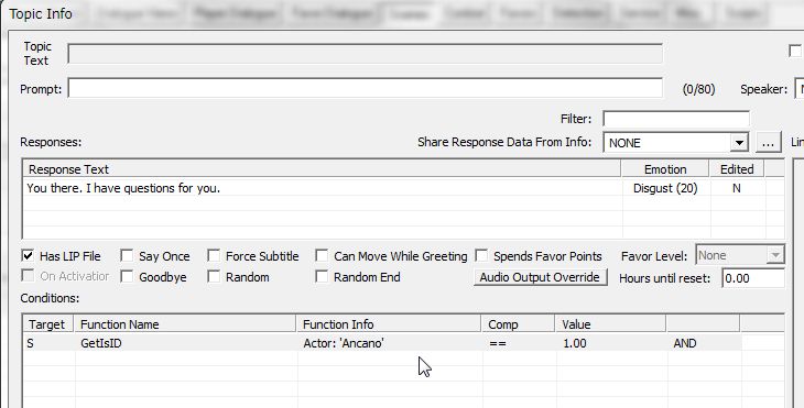 また各セリフは、ミラベル本人アンカノ本人でないとまずしゃべってくれません。テストプレイでは、コンソールの" PlaceAtMe "でコピーを作って仲間にしました。