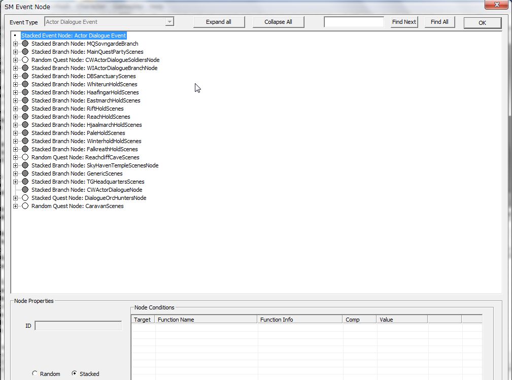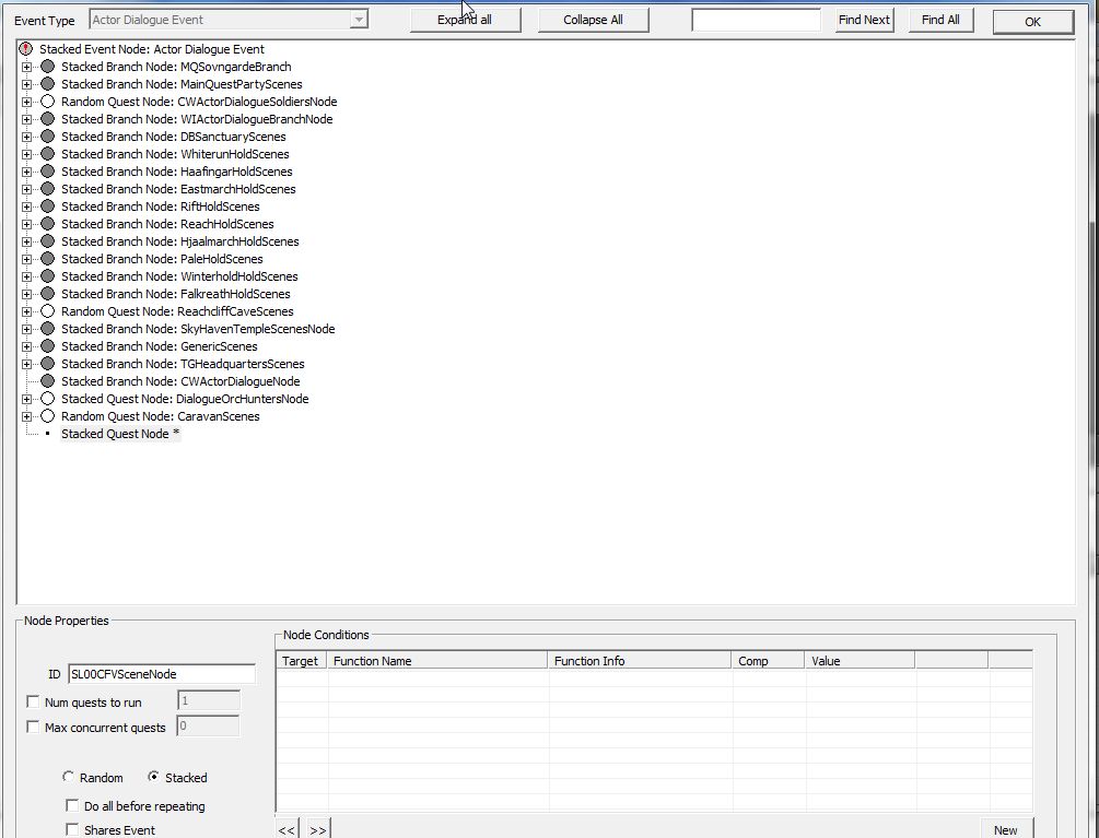 ここで候補に挙がってくるのは、Quest Dataの「Event」でNONEかActor Dialogue Eventが選択されているQuestのみです。