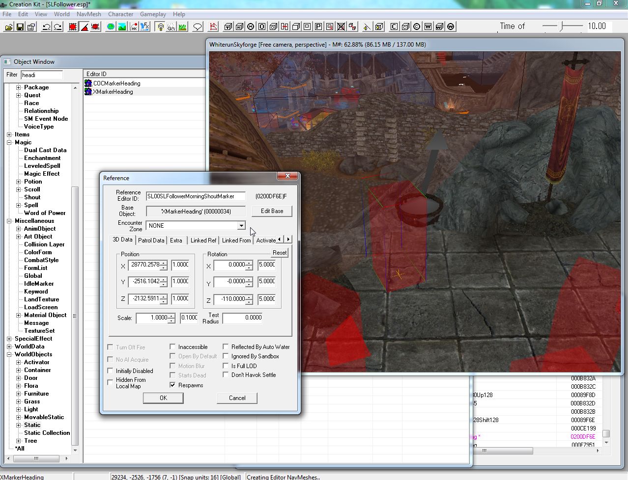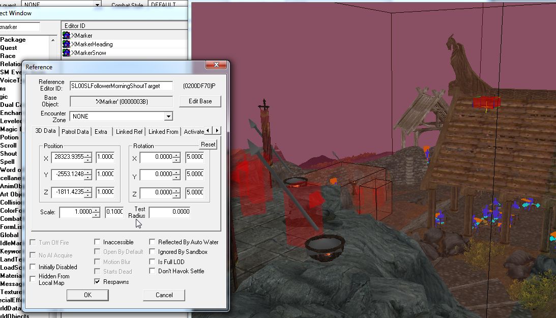 NPCがAIPackageで赤いバツ印をTargetにして矢を放っていたことまでは突き止めていたのですが、「Xmarker」の扱い方が分からなかったのでずっと悩んでおりました。