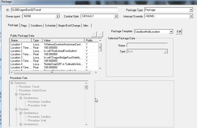 もう一人のドヴァキンにも、ホワイトラン~ソリチュードまで各町の宿を経由して旅をするPackageを作りました。