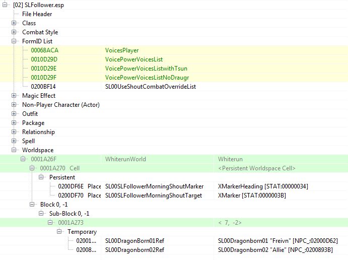 余談ですが、ドヴァキン達のボイスタイプがなにでもプレイヤー用のシャウトが音声つきで使えるよう、4つのFormList「VoicesPlayer」「VoicePowerVoicesList」「VoicePowerVoicesListNoDraugr」「VoicePowerVoicesListwithTsun」も変更しました。