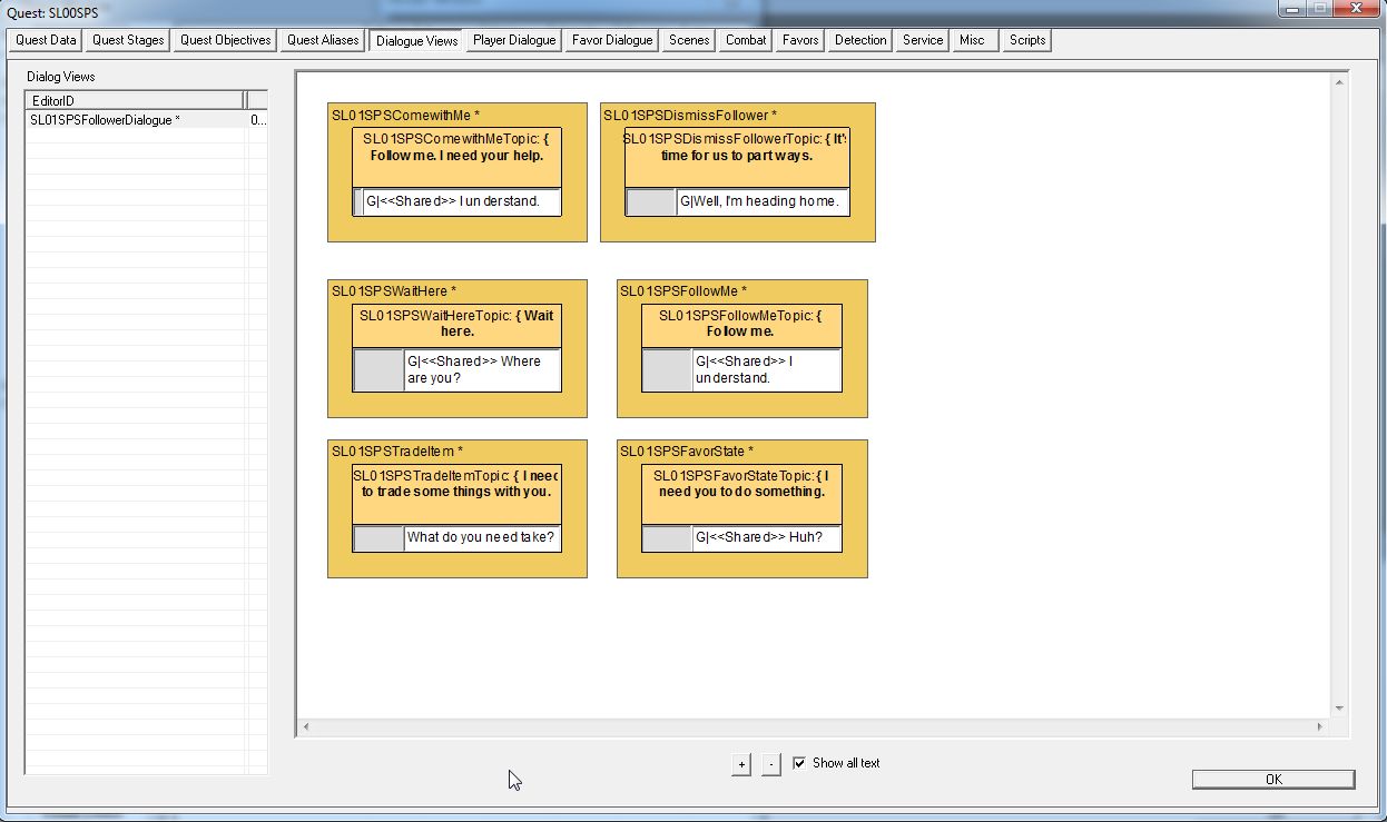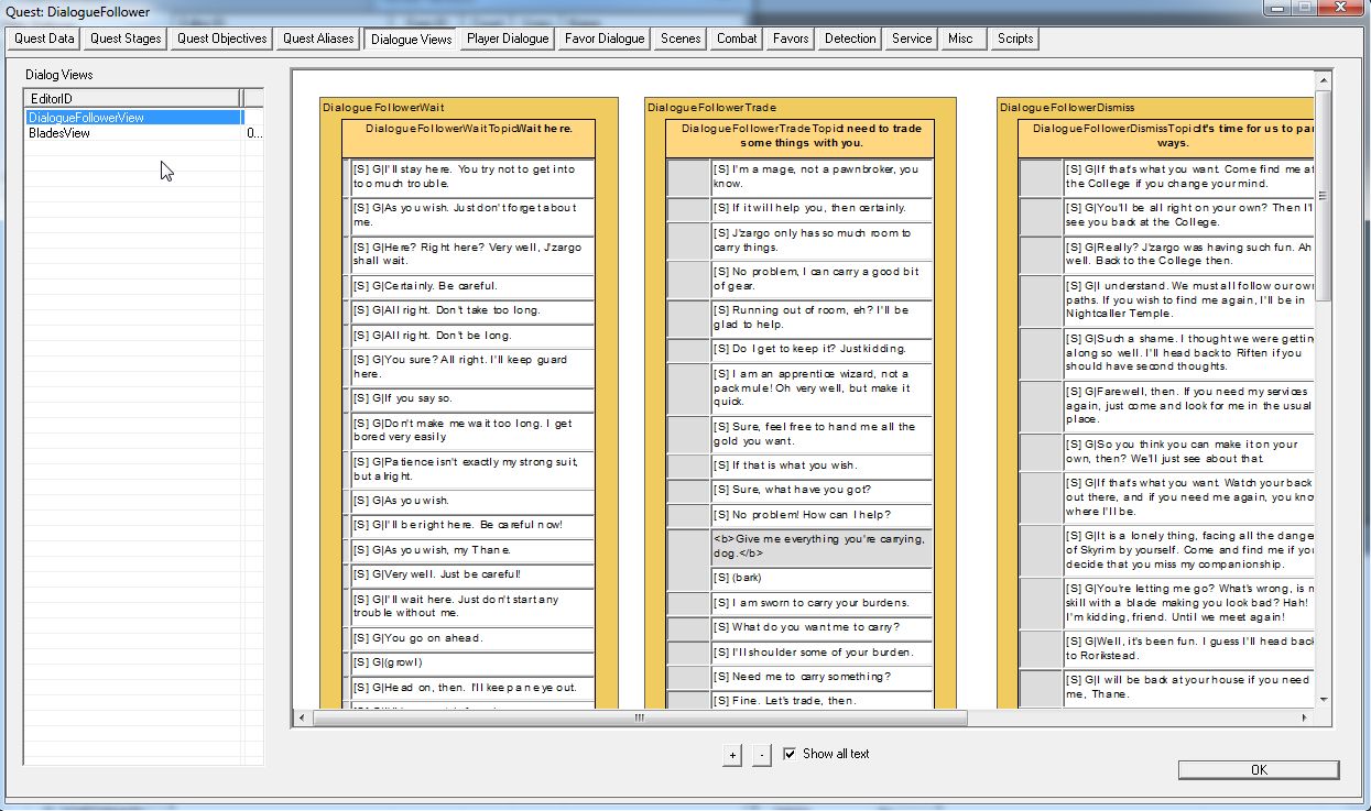 自作のフォロワークエストを作る際、使えそうなダイアログやアイドル時のセリフは、このクエストに寄生する形で作っていこうと思います。
