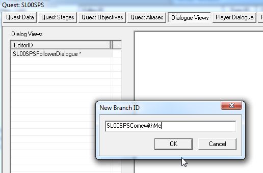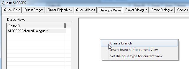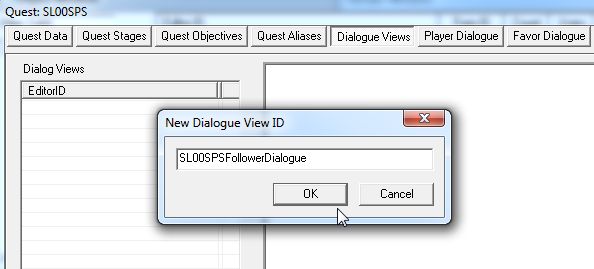 EditorID欄のところで右クリックしてDialogueViewを新規作成。