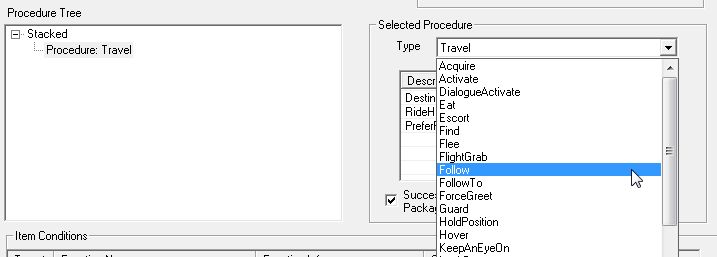「Procedure: Travel」を選択し、右欄のTypeから「Follow」を選択。