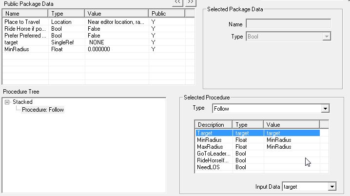 Followを動かすのに必要な設定値のリストが「Selected Procedure」に表示され、足りない設定値の項目が左上欄の「Public Package Data」に追加されました。追加されたといっても、必要最低限の追加です。