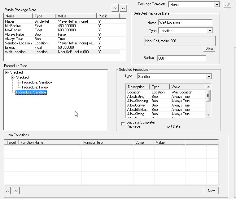 「Public Package Data」にて"Wait Location"を追加。あまり遠くに行かれると困るので、本人の周囲半径600でくつろいでもらうことにしました。