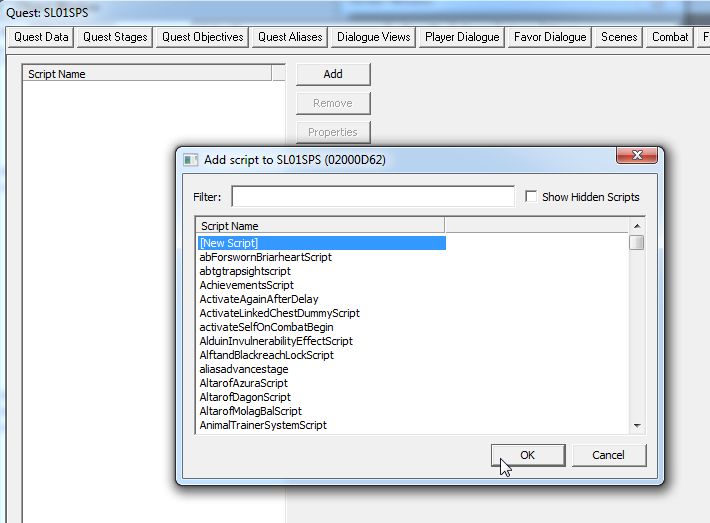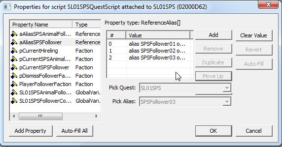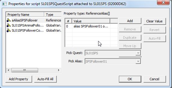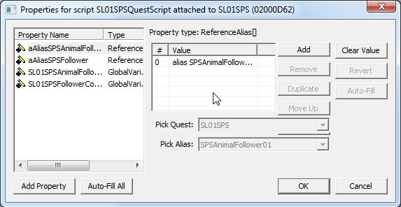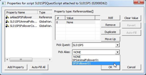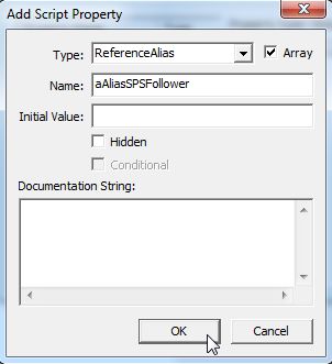 クエストのScriptタブに戻り、ReferenceAliasのPropertyに、増やしたフォロワーAliasをAddします。