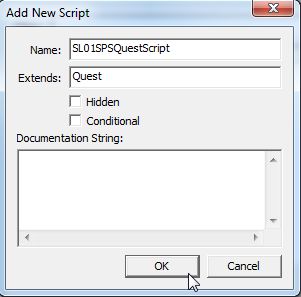 スクリプトの名前を入力。これはそのままスクリプトのファイル名にもなります。ファイル名とスクリプト名は同じでないと動作しないようです。以前うっかりScriptNameだけ変えてしまって、CKに怒られました。