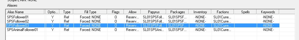 動物フォロワーのAlias Factionは、自作のCurrentFollowerファクション、バニラの「PlayerFollowerFaction」「CurrentFollowerFaction」の3つ。
