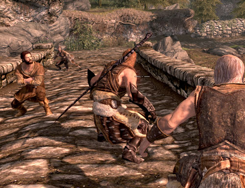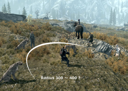 抜刀してみます。クモの子を散らすように、とまで鮮やかとはいきませんが、距離を開けてくれます。距離300まで逃げたらFleeが終わると思うんですが、勢いあまって300以上くらいは逃げてくれているみたいです。近づけばだらだらっと逃げる(場所が狭いとワープする)ので、狭い通路でも詰まって動けなくなることはないでしょう。恐らく、多分……。