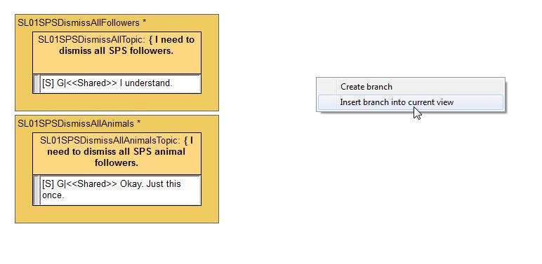何もない白い部分で右クリックして、「Insert branch into current view」を選択。