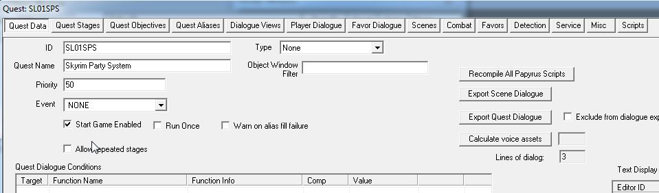 ちなみに、ダイアログやシーンなどに会話文を含んだ「Start Game Enabled」のクエストは、「