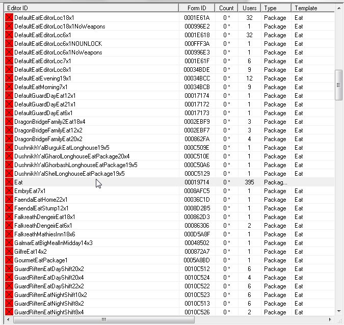 約395個のAI Package Templateにも一斉に変更が入っています。壮観です。もしこれが意図した結果でない上に、他のバニラAIのEat Packageをカスタム編集した後、知らないままうっかりセーブしてバックアップもとってなかったら、悲鳴をあげることになります。