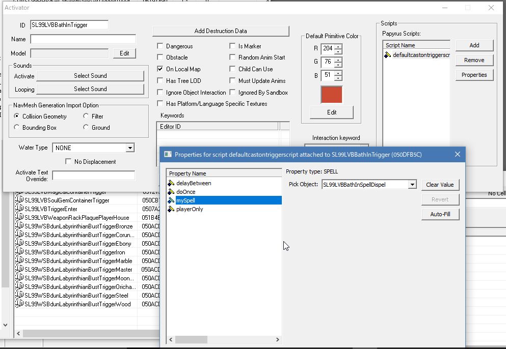 「Object Window」にてWorldObjectsの下にあるActivatorで、このようなActivatorを作ります。「defaultBlankTrigger」というのがあるので、それをコピーすれば簡単です。