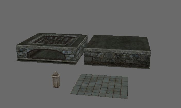 さて、「WRStone」がこぎれいなグレーの石造りテクスチャセットだと分かりました。これみたいに並べるとシームレスっぽくなるテクスチャは、汎用性が高いです。