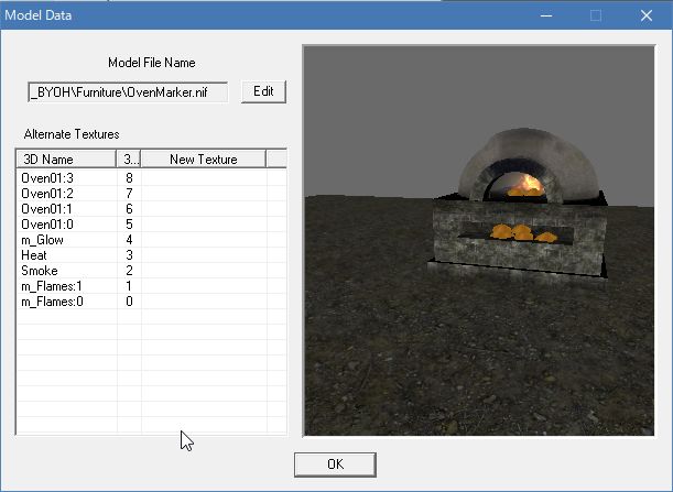 Modelという項目の右にある「Edit」ボタンを押して、オーブンのテクスチャを変えましょう。