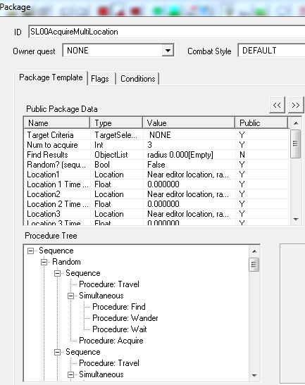 このパッケージは指定したObjectTypeと合致するものを探し出し、自分の懐に入れる行動をとるという、すこぶる面白いものです。見たところゲーム内では、クエスト絡みで5ヶ所程度しか使われていません。例えばヘルゲン脱出の際、レイロフが帝国軍の女隊長の懐からヘルゲン砦の鍵を得る行動がその一つ。