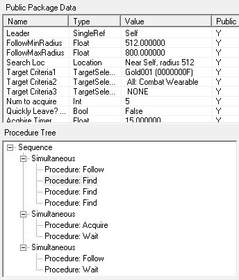 「Travel」を「Follow」に変え、「Acquire」のBranchはConditionsを設定し、お供との距離が一定以内の時のみ行うようにしました。これで拾い物に夢中になって置いてけぼり……な状況を回避できます。