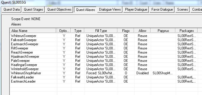 最後に掃除人のインベントリから全てのアイテムを取り去り、元締めの商売用宝箱へ移します。この宝箱はリスポンするので、Playableでないアイテムやその他のよく分からないアイテムを取っていても、リスポンのタイミングで消えてくれるでしょう。"RemoveAllItem"はプレイヤーに対して実行すると、クエストアイテムだけインベントリに残すことも可能ですが、NPCに対してはそんな細かいことはできないようです。クエストアイテムはリスポンしないはずなので、商売用宝箱に入れても多分大丈夫。事前に掃除人から取り上げておいたほうがいいのは当然ですが。