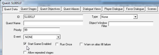 Quest Dataボタンを押して、「Start Game Enabled」にチェックを入れます。