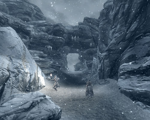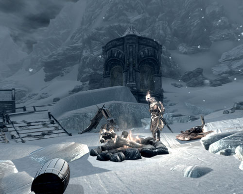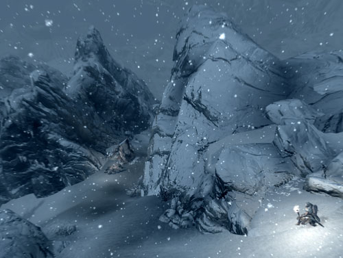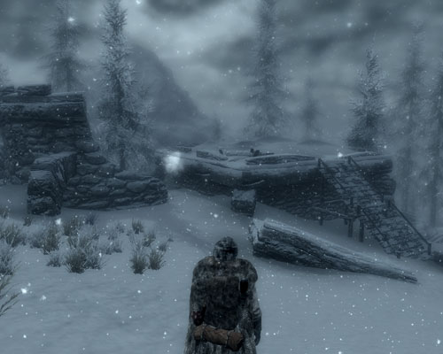こちらはドーンスターへの道のりを思い出しながらテントの中で震えている一方ですが、ドヴァキンはその間ずっとスノーベリー摘みに勤しんでいました。岩山の向こうに姿が消えた時などは、なにやらシャウトを叫んでいたので、狼退治もしてきたのかもしれません。ペイルの自然を満喫してますね。