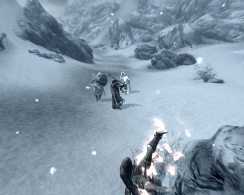 山賊の一人はファイアブレスで、もう一人はストームコールの落雷で倒したドヴァキン。