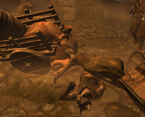 スカイリムの配達人は、本当に命がけ……。プレイヤー担当の配達人が一番危険に晒されているのは言うまでもありません。そういえばあの配達人、シドゲイル首長の手紙を届けに来て以来会ってない気がします。メインクエストやってないと、あまり会う機会がないのかもしれませんね。