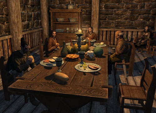 集めておいた錬金素材をインガンさんへ届けに行きます。ちょうどお食事中だったので、勝手に混ぜてもらいました。