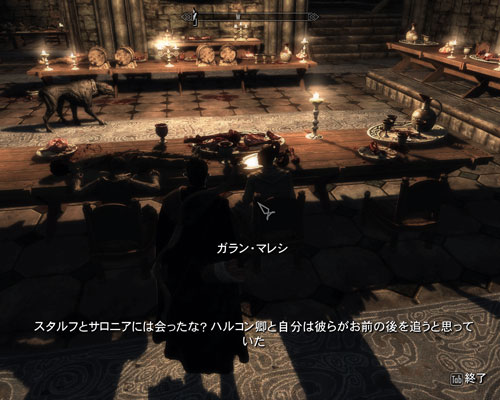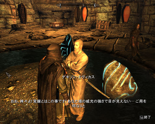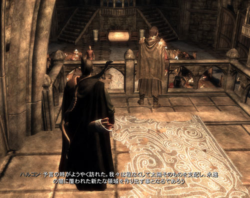 聖杯の件を報告。入れ違いにエルダースクロールと太陽に打ち勝つ算段を聞きます。