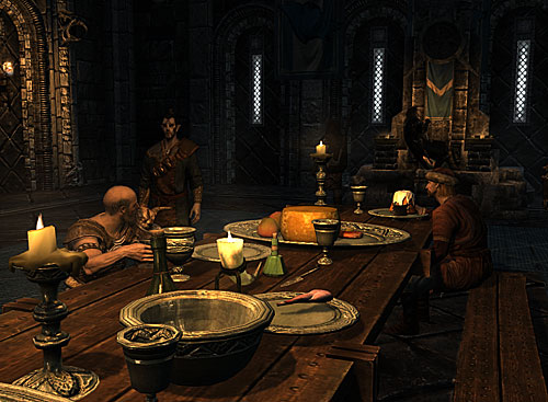 ブランウルフさん、いつも町や宿でしか見かけなかったけど、ここに来ることもあったんですね。ダークエルフ達の扱いについてウルフリック首長に話しに通ってるのか。