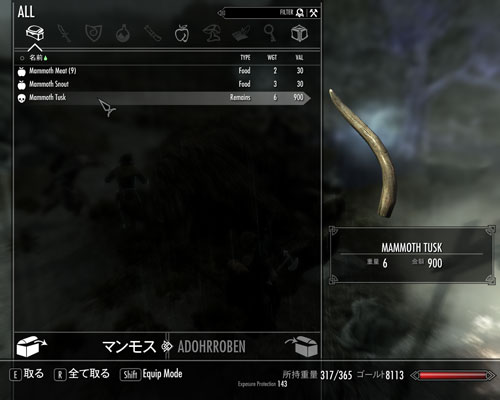 道中マンモスの牙を密漁したいので、ドヴァキンを連れて行くことにしました。
