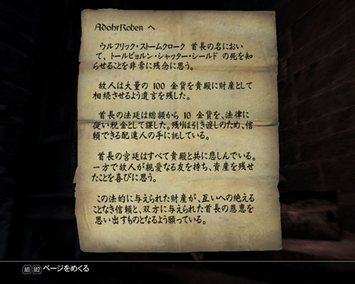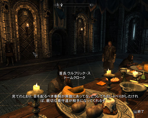 ウルフリック首長に怖いこと言われてますが。ちなみにガルマルさんは首長を置いて、市場のお祭りに行ってました。