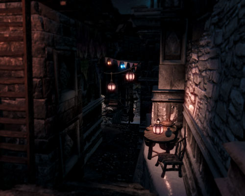 灰色地区の改装Modとお祭りの提灯が見事に干渉することなく、うらぶれた通りにとても綺麗に映えています。