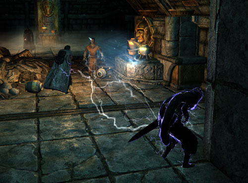 クリスタルで動く奇妙な装置。スカイリムが寒すぎるのか、レンズが歪んでしまってるので魔法で温めたり冷やしたりしてパズルを解かなくてはいけません。