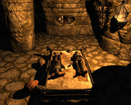 入ってすぐ、奥の小部屋が覗ける窓があって、これ見よがしにドラウグル達が寝ていました。