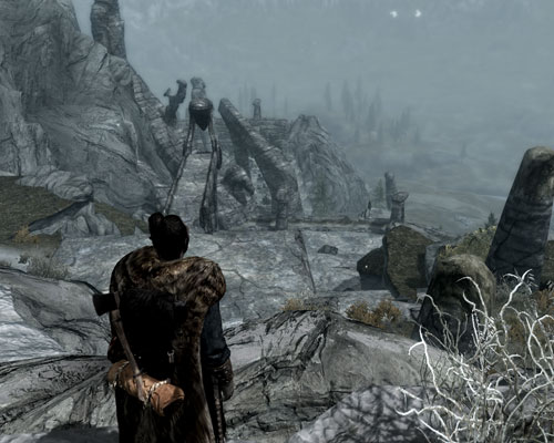 以前ドヴァキン達と一緒に外の幽霊達を倒していたので、取りこぼしのスケルトンだけが残っていたようです。