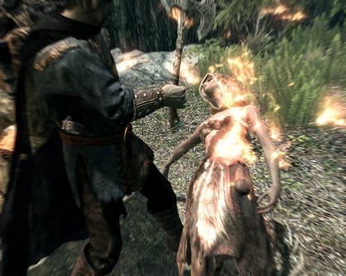 うそです。画面外に、現地雇用した自作フォロワーがいます。旅する系のフォロワー追加Modに触発されて作ったNPCで、二刀流のカジート戦士。メルセルのCombatStyleを使っているので戦い方が激しいです。山賊長は彼にさっくりと倒してもらいました。だって自分ひとりじゃ絶対勝てないんですもの。
