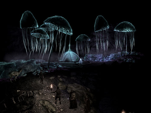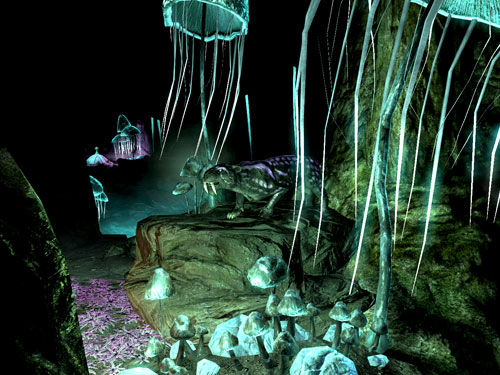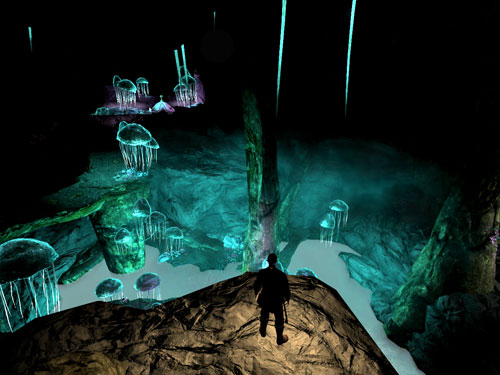 不思議な鉱石も暗闇の世界に彩りを添えています。本当にあれはどんな石なんだろう。