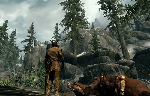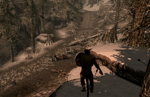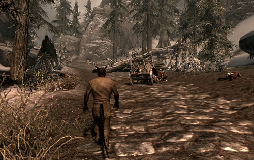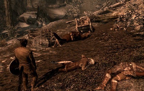 荷車近くに倒れていた死体はすべてカジートだった。同じく尻尾を持つ仲間として、同情を覚える。カジートからすれば、頭の上に可愛い三角耳を持っていない生物は仲間とはみなせないかもしれないが。