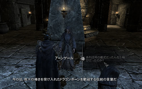 師達のドラゴン語は、ドラゴンボーンを迎える歓迎の言葉だった。そして同じ言葉を前回受けたのは、かのタロスだという。