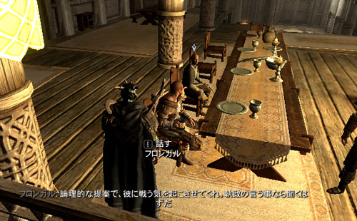 ドラゴンズリーチを訪ねると、ちょうど夕食時だった。執政のアベニッチが首長の弟フロンガルに何か迫られている。